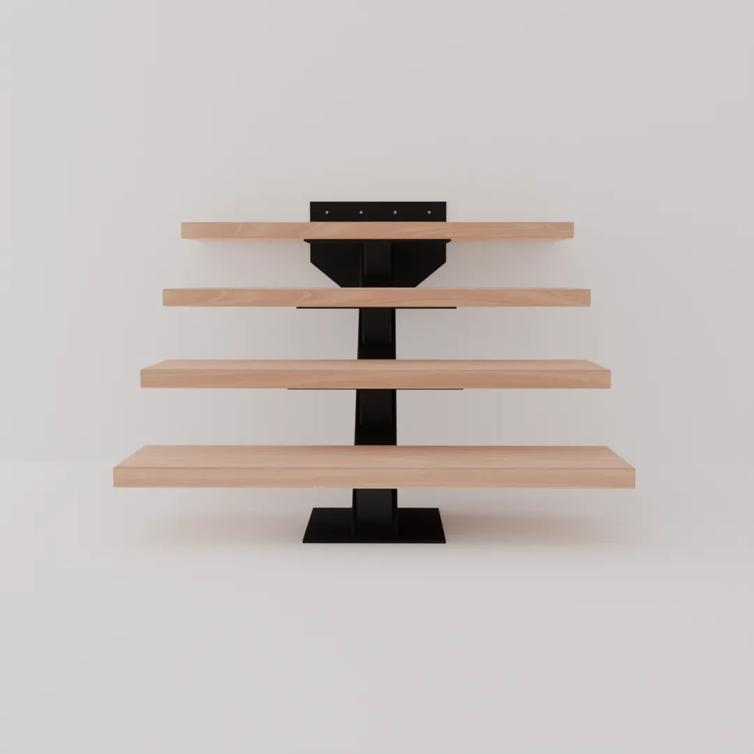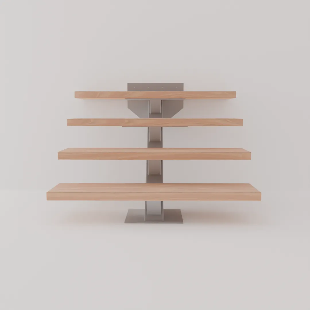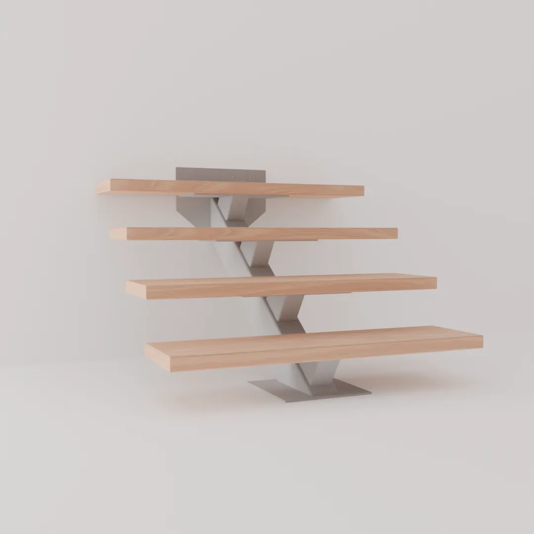 Center stringer in HSS 4x6 tube with HSS 3.5x3.5 step supports oriented perpendicular to the stringer. Slim profile that lets light through and keeps the space feeling open.